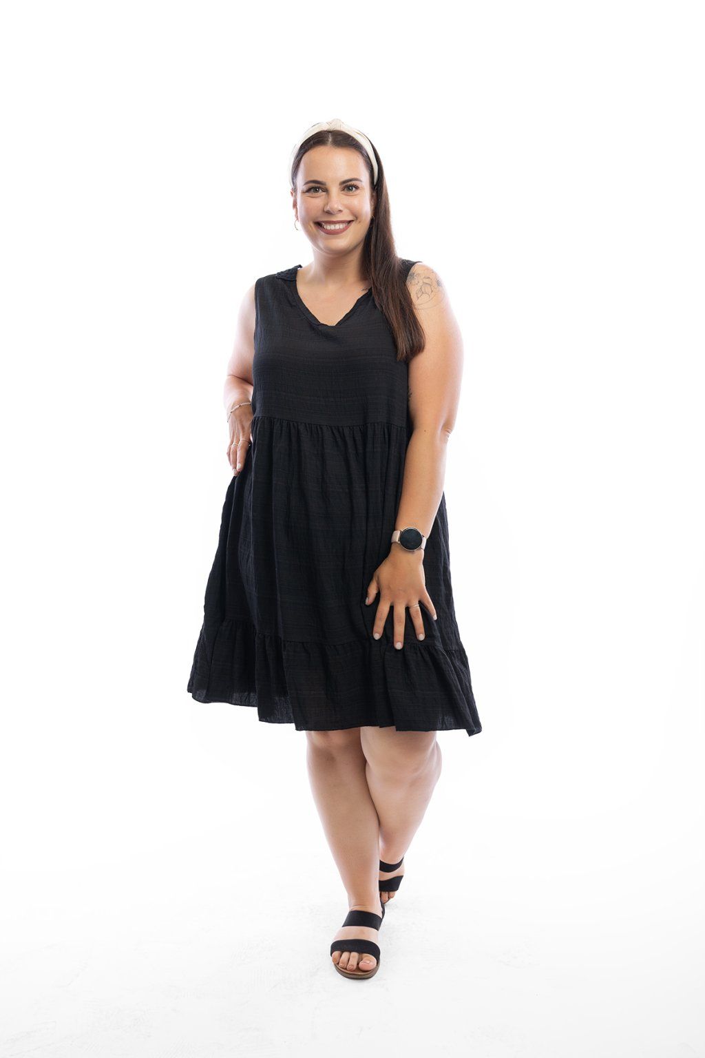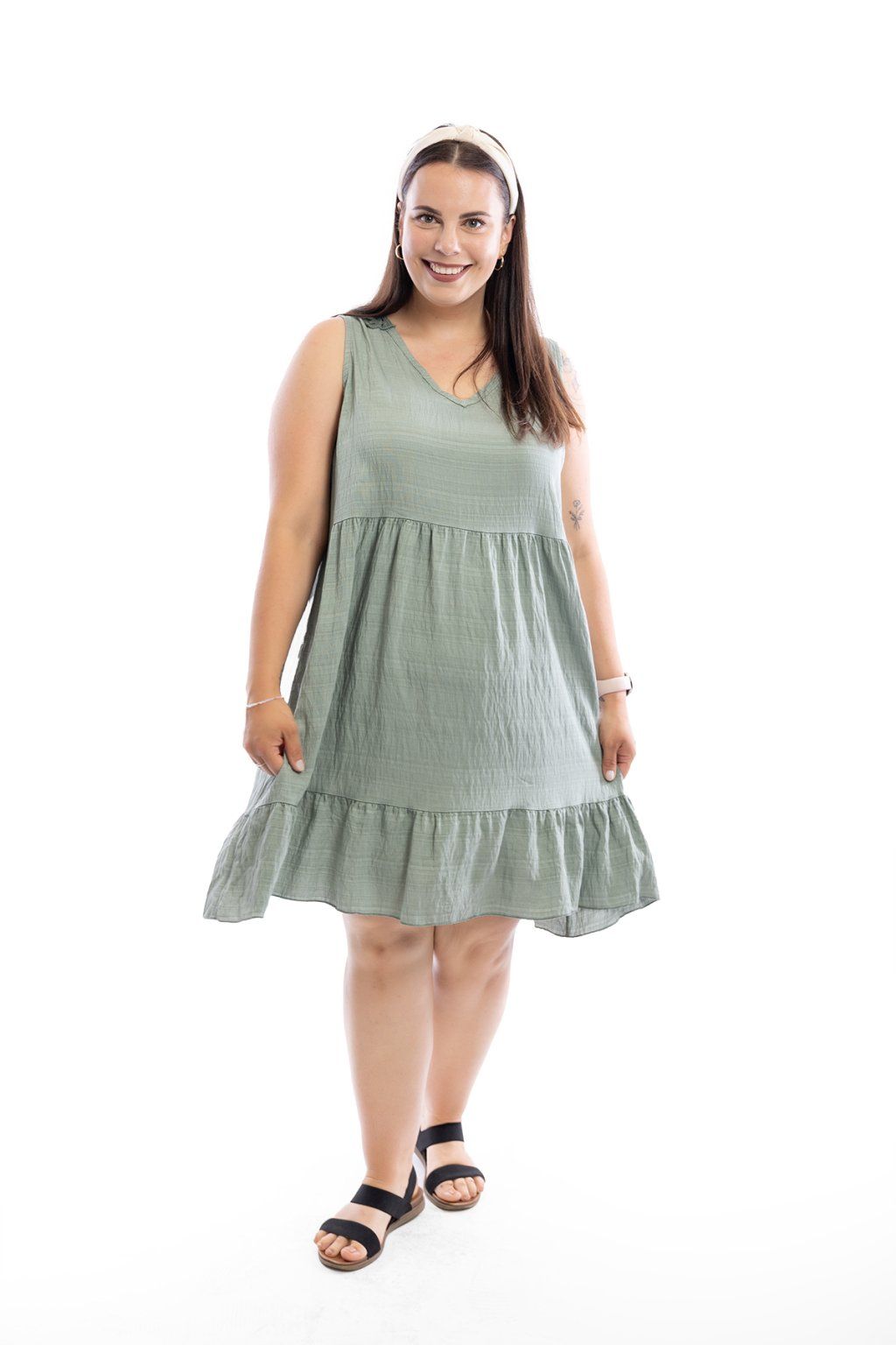 Letní šaty SINDY jsou krásné šaty s ozdobnými zády. Vzor na zádech šaty obzvláštňuje a nápaditě připomíná slunce. Sukně krásně splývá. Na výběr je ze spousty barev a sedí krásně na postavu od velikosti L do 2XL. Šaty jsou bez rukávů a vzdušné.